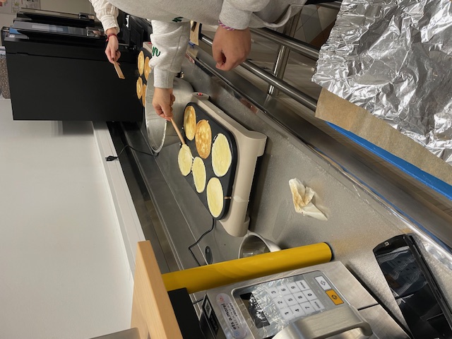 La pâte à crêpes, préparée par les cuisiniers de l'établissement, a ensuite été confiée aux internes, qui ont participé activement à la cuisson. Chacun a pu déguster ses crêpes accompagnées de différentes garnitures (sucre, confiture, pâte à tartiner), pour le plaisir de tous.