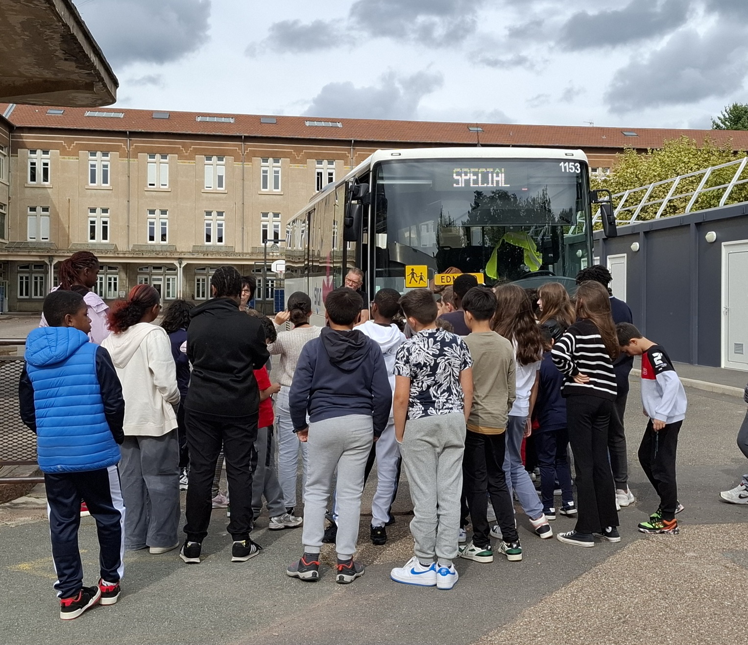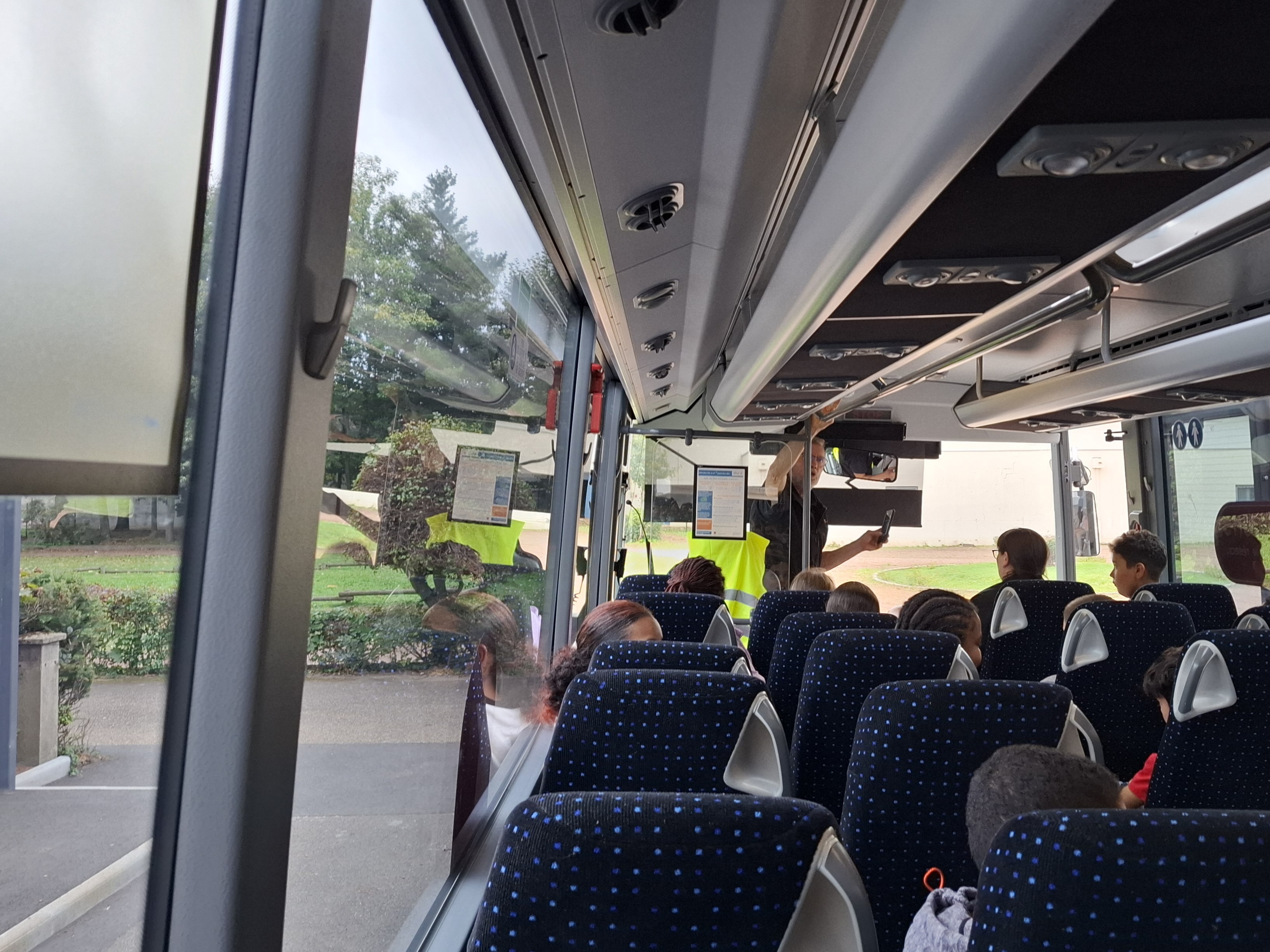 Un car a également été mis à disposition pour vivre une évacuation en temps réel. Savez-vous qu'en cas d'urgence les passagers doivent sortir en 45 secondes maximum? Nos deux groupes ont explosé le chrono: en 40 secondes, ils étaient tous dehors!