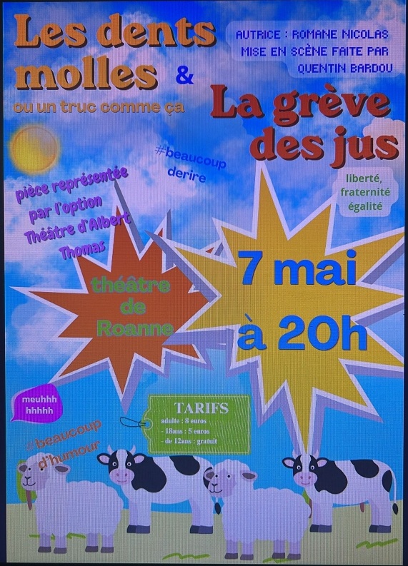 Les 23 élèves de l’option théâtre du LGT, leurs intervenants artistiques et leur enseignante sont heureux de vous présenter leur travail de l’année le jeudi 7 mai 2026 à 20 h au TMR (Théâtre Municipal de Roanne).