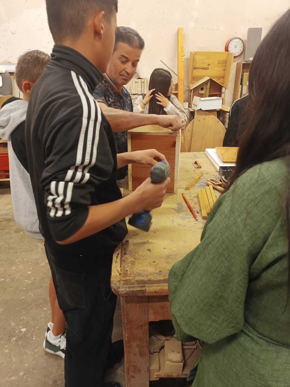 Atelier bois : fabrication de jardinières destinées à embellir le lycée, qui seront bientôt fleuries par leurs soins pour égayer le chalet dans la cour.